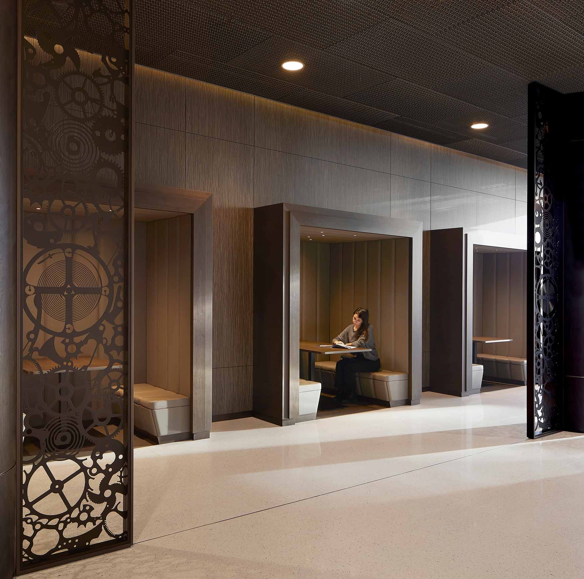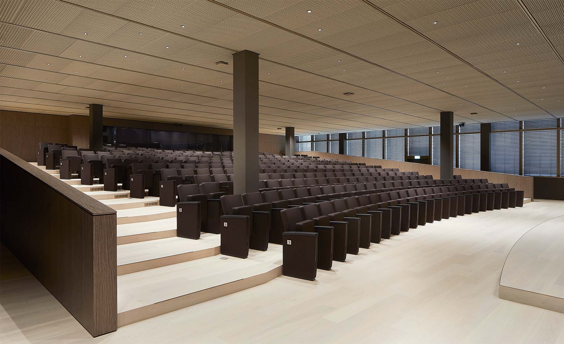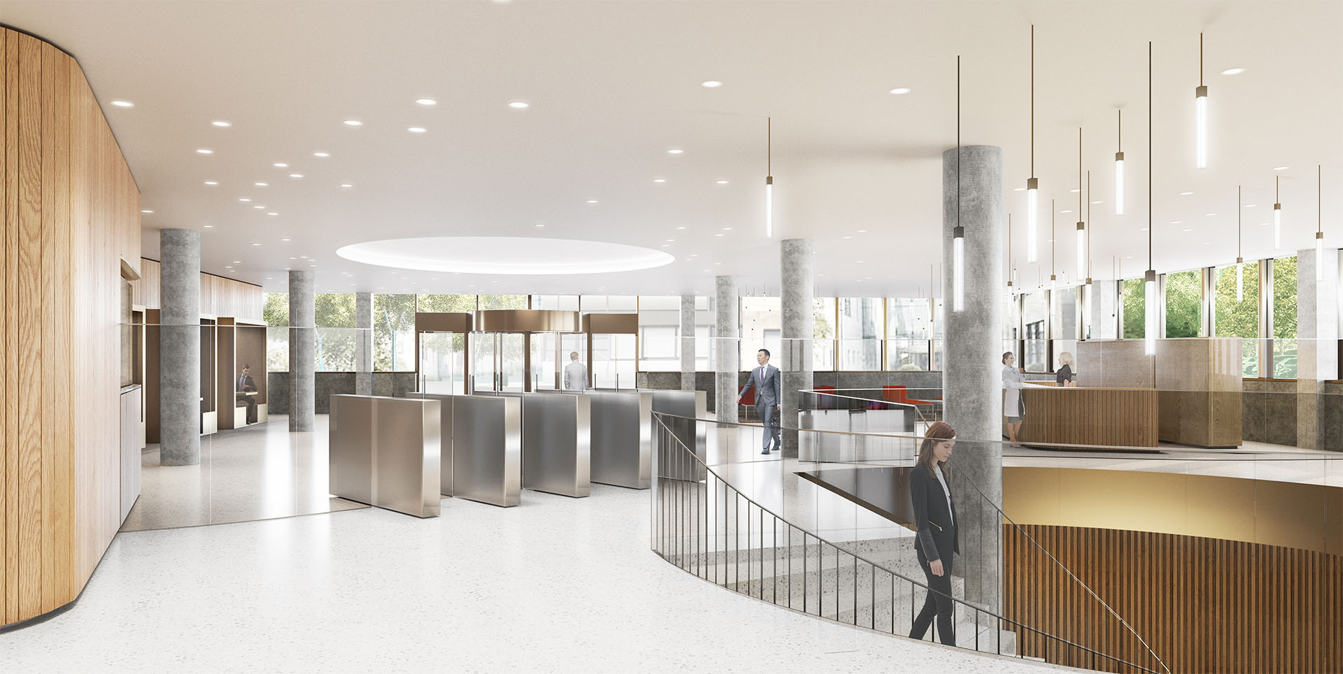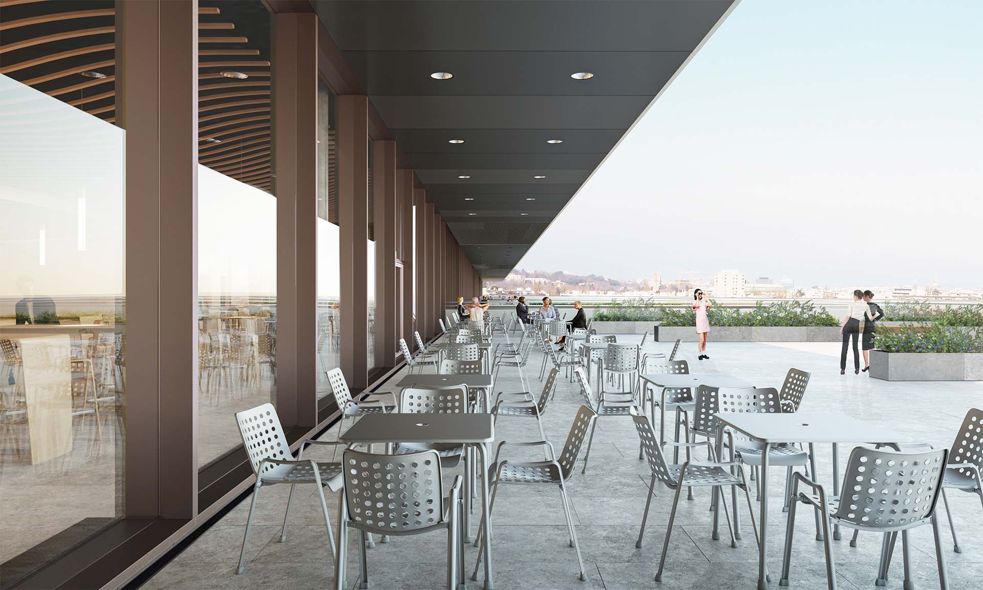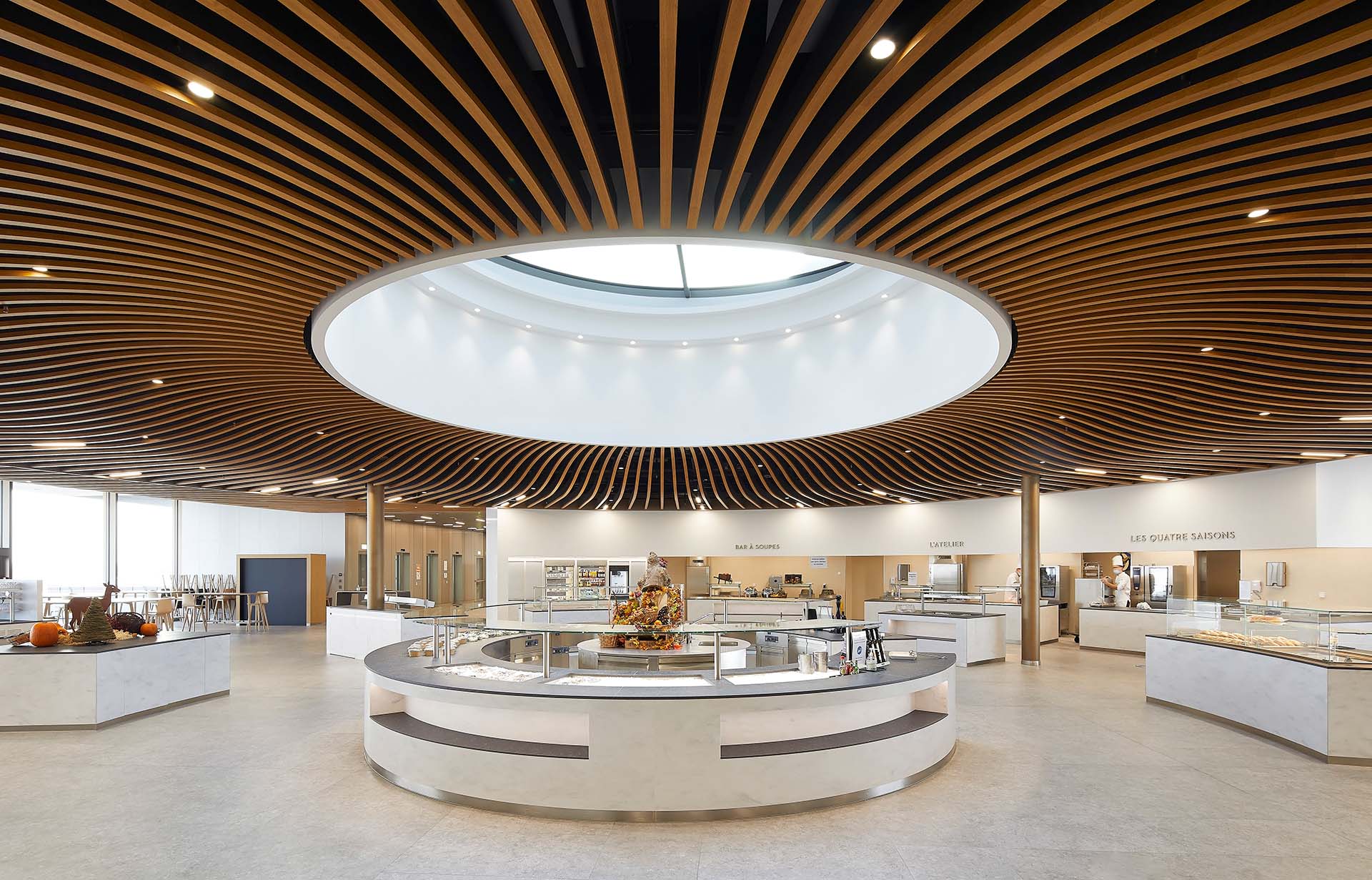 L’entrée principale, le boulevard des collaborateurs, l’étage de formation avec l’auditorium et les restaurants en attique sont des espaces qui participent l'attractivité et à la qualité de l'environnement de travail de la nouvelle manufacture.