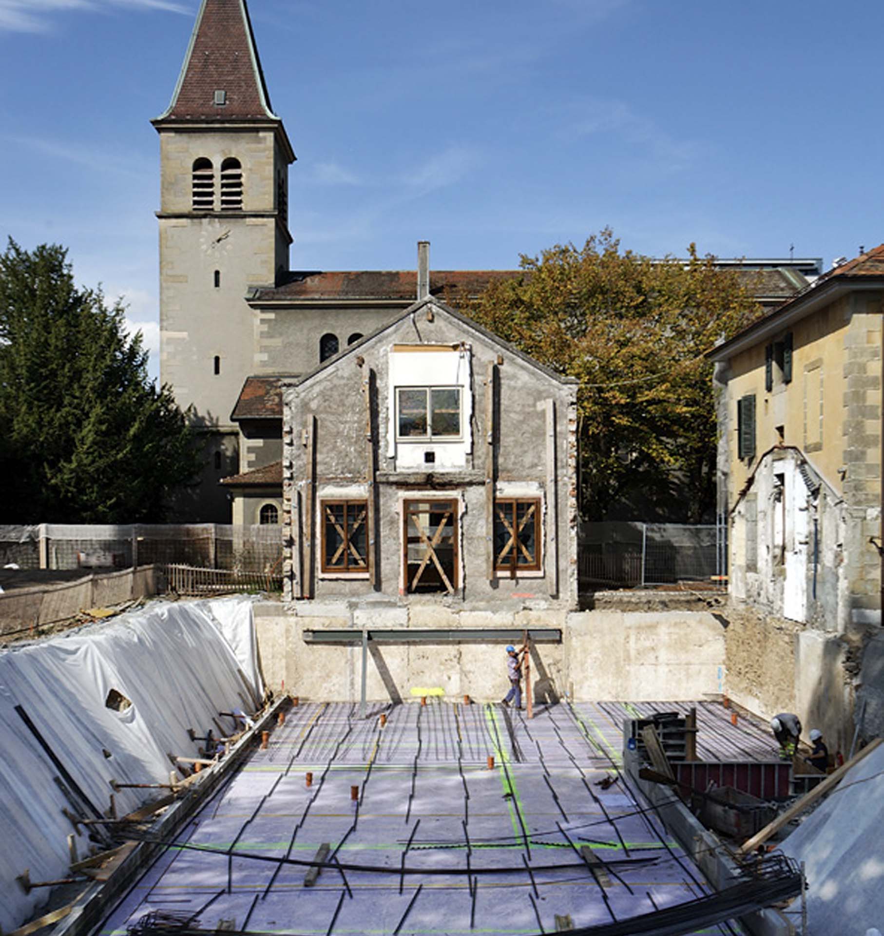 La rénovation de la cure et l’extension de sa salle paroissiale attenante s’inscrit dans une vaste opération d’urbanisation du centre de Versoix.